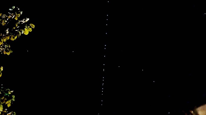 Starlink uydularının geçişi görenleri heyecanlandırırken, gökyüzünde tek sıralı halde giden uydular, cep telefonu kamerasıyla kaydedildi.