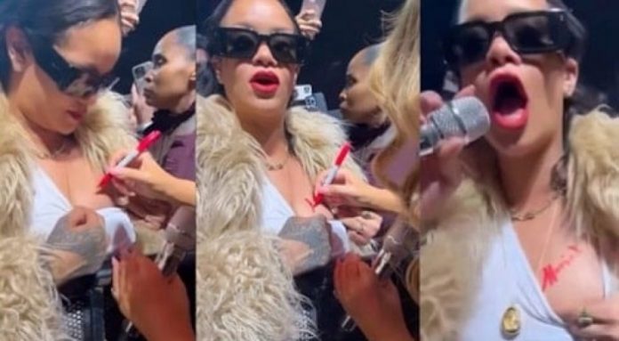 Rihanna, konserini seyretmeye gittiği Mariah Carey’den göğsünü imzalamasını isteyince unutulmaz anlar yaşandı.