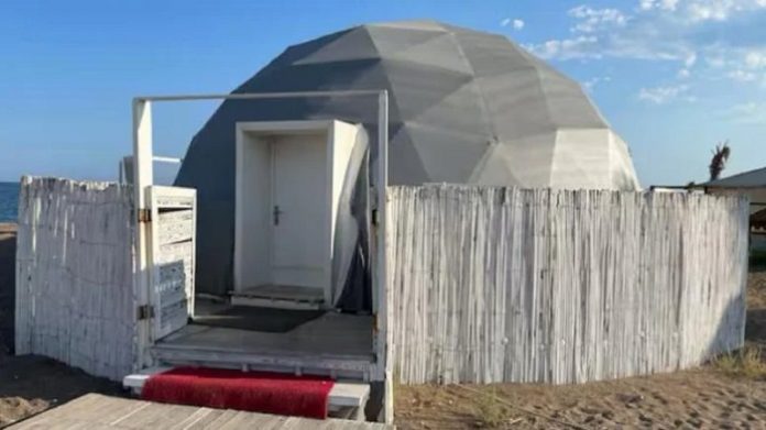 Lara Sahili’nde bulunan bir işletme, denize 10 metre kadar yakınlıkta, kumsalın üzerine ‘Kubbe’ ismi verilen bir yapı inşa etti.