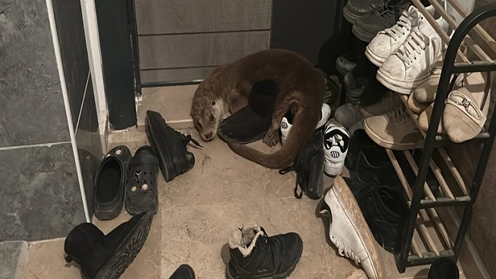 Apartman sakinleri tarafından fark edilen hayvan için Doğa Koruma ve Milli Parklar ekiplerine haber verildi. Apartmana gelen ekipler, 5’inci kattaki merdiven korkularının yanında fark edilen su samurunu uzun uğraşlar sonucu yakaladı.