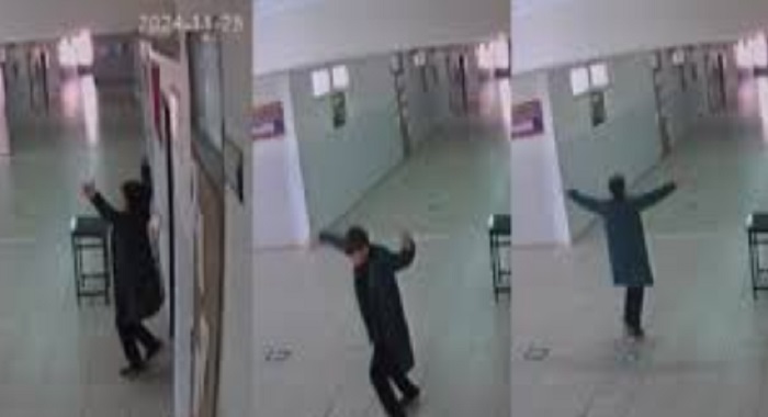 Diyarbakır’ın Silvan ilçesinde Mesleki ve Teknik Anadolu Lisesi’nde nöbetçi erkek öğrenci, koridorda tek başına olduğu sırada halay çekti. O anlar okulun güvenlik kamerasına yansıdı.