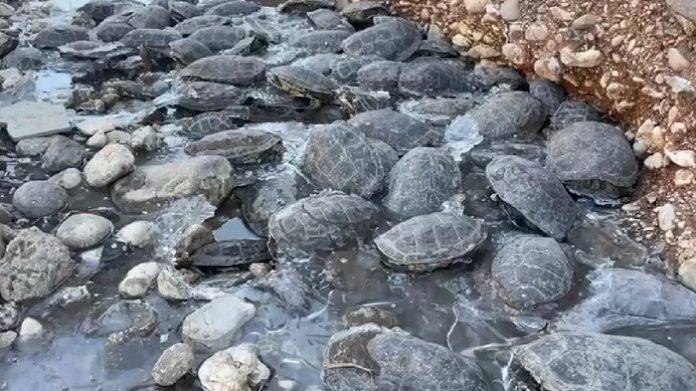 Dere yatağının suyunun kesilmesinin ardından 316 kaplumbağa mahsur kaldı.