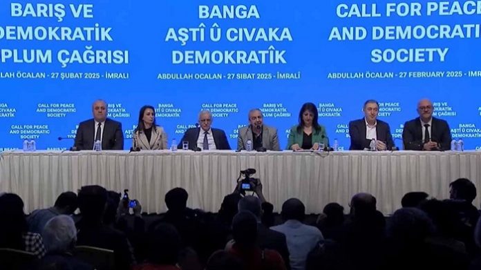 Teröristbaşı Abdullah Öcalan’ın İmralı heyetiyle görüşmesinden sonraki çağrısı Ahmet Türk tarafından Kürtçe, Pervin Buldan tarafından Türkçe okundu. Teröristbaşı Öcalan,terör örgütü PKK’ya kendini feshetme ve silah bırakma çağrısı yaptı.