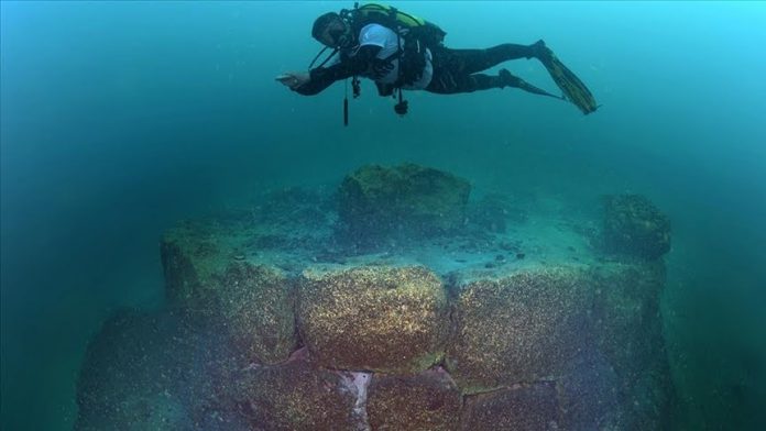 Su Altı Görüntü Yönetmeni Tahsin Ceylan, Van Gölü’nde yaptığı dalış sırasında Akdamar Adası kıyısında 15 metre derinlikte bulunan burç benzeri yapı ile duvar kalıntıları görüntüledi.