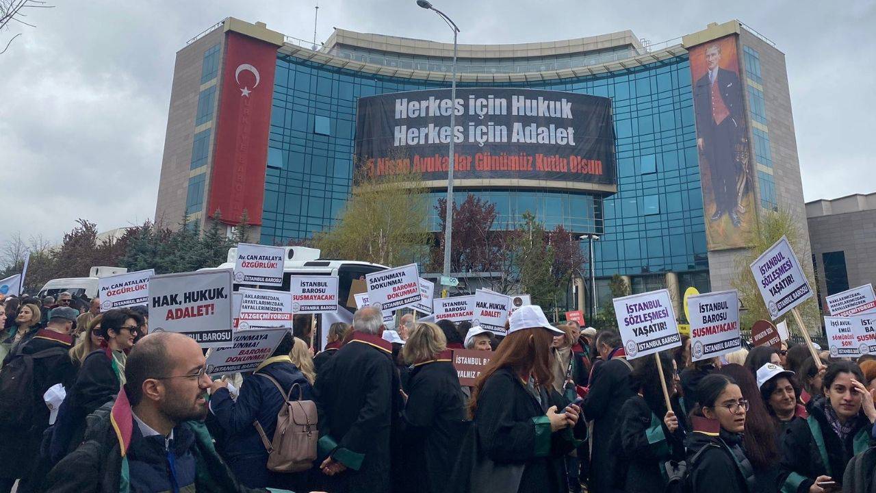 Yürüyüş boyunca “Hak, hukuk, adalet”, “Susmuyoruz, korkmuyoruz, itaat etmiyoruz” gibi sloganlar atan avukatlar, yargı bağımsızlığının korunması gerektiğini vurgulayan dövizler taşıdı. TBB binasına “Herkes için hukuk, herkes için adalet” pankartı asıldı.