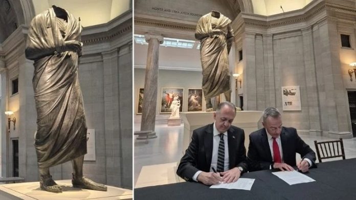 Kaçak kazılarla 1960’lı yıllarda yurt dışına kaçırılan Roma İmparatoru Marcus Aurelius’un bronz heykeli, resmen Türkiye’ye iade ediliyor.