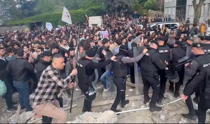 Etkinliğin düzenlendiği Kuzey Kampüs önünde bir araya gelen öğrenciler, “Üniversitemizde istismarcılara yer yok” sloganlarıyla yürüyüş yapmak istedi. Ancak öğrencilere önce özel güvenlik, ardından kampüse sokulan çevik kuvvet polisi müdahale etti. Polis ablukasına rağmen öğrencilerin protestosu devam etti.