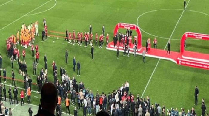 Galatasaray taraftarları, TFF Başkanı İbrahim Hacıosmanoğlu kupa merasimi için sahaya çıktığında tepki gösterdi. Taraftarlar TFF Başkanı’nı ıslıklayarak tepki gösterdi.