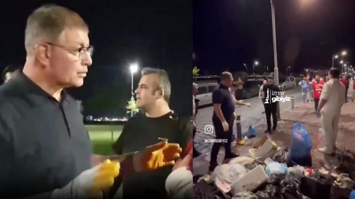 Bunun üzerine akşam saatlerinde İzmir Büyükşehir Belediye Başkanı Cemil Tugay, çöpleri toplamak için İzmir Büyükşehir Belediyesi Başkanvekili Zafer Levent Yıldır ile birlikte Kordon’a gitti. Burada, Tugay ve Yıldır’a bölge halkı ve işletmeciler de yardım etti.