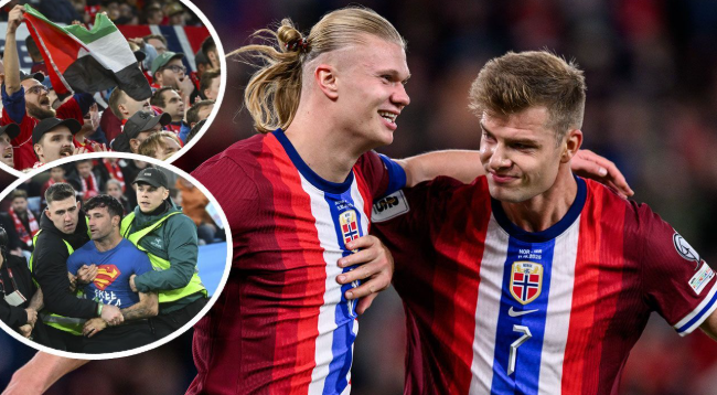 Norveçli taraftarlar, federasyonun izin vermesiyle stada Norveç ve Filistin bayraklarıyla gelerek desteklerini sürdürdü.