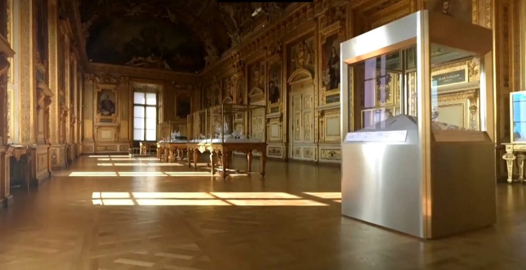 Apollo Galerisi’nde yer alan Fransa Kraliyet mücevherlerinin sergilendiği ve soyguncuların hedefledikleri muhafaza.