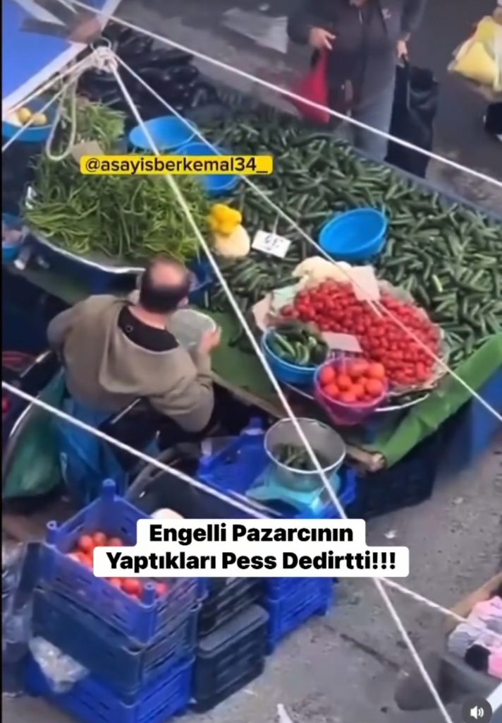 İstanbul Bahçelievler’deki bir semt pazarında sebze satan pazarcının hileli satışı kameralara takıldı.