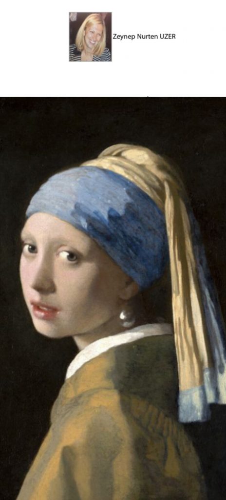 Hollandalı ressam Johannes Vermeer’in 360 yıl önce yaptığı yağlı boya tablo halen Lahey’deki Kraliyet Resim Galerisi’nde sergileniyor. Portrenin yüzyıllardır ressamın kızı, hizmetçisi gibi çevresindeki bazı kişiler olduğu varsayımları yapılsa da kimlik hala meçhul.