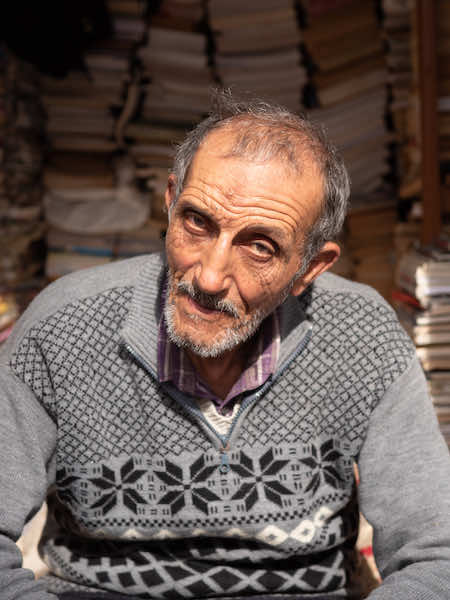 Aziz, 43 yıldan fazla bir süredir aynı yerde çalışıyor ve Rabat’ın medinesinin (eski şehir) en eski kitapçısı.