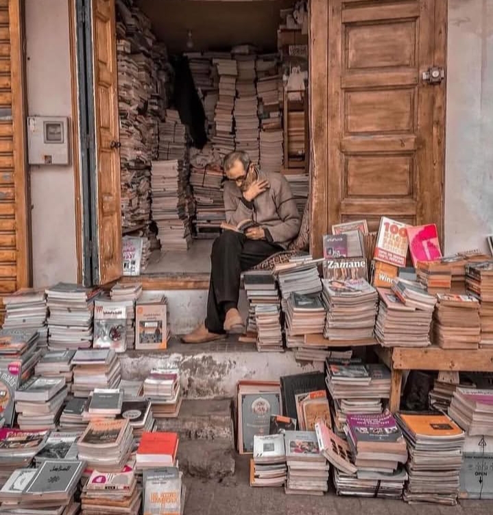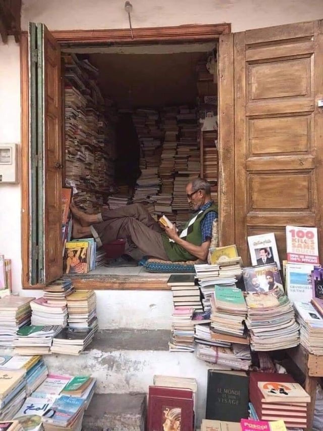 Rabat’ın eski şehrinin kalbinden geçen Muhammed V Caddesi’nin simgesi, beş metreye beş metrelik kitapçısının kapısında kitap okurken görülen manzaradır. Mağazada müşteriler, 5 MAD (0,52 $) karşılığında magazin dergileri ve 700 MAD (73 $) karşılığında tıp kitapları bulabilirler.