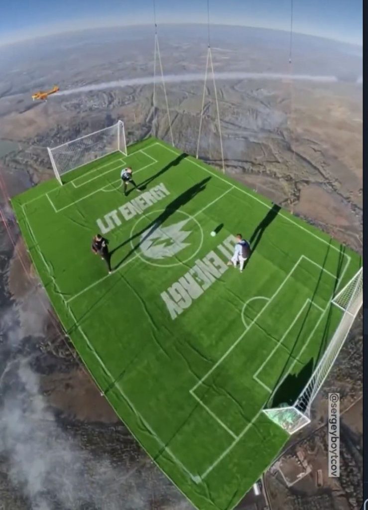 Rus ekstrem sporcu Sergey Boytsov ve ekibi, bin 800 metre yükseklikteki sıcak hava balonu altına kurulu 5×3 metrelik sahada futbol oynadı.