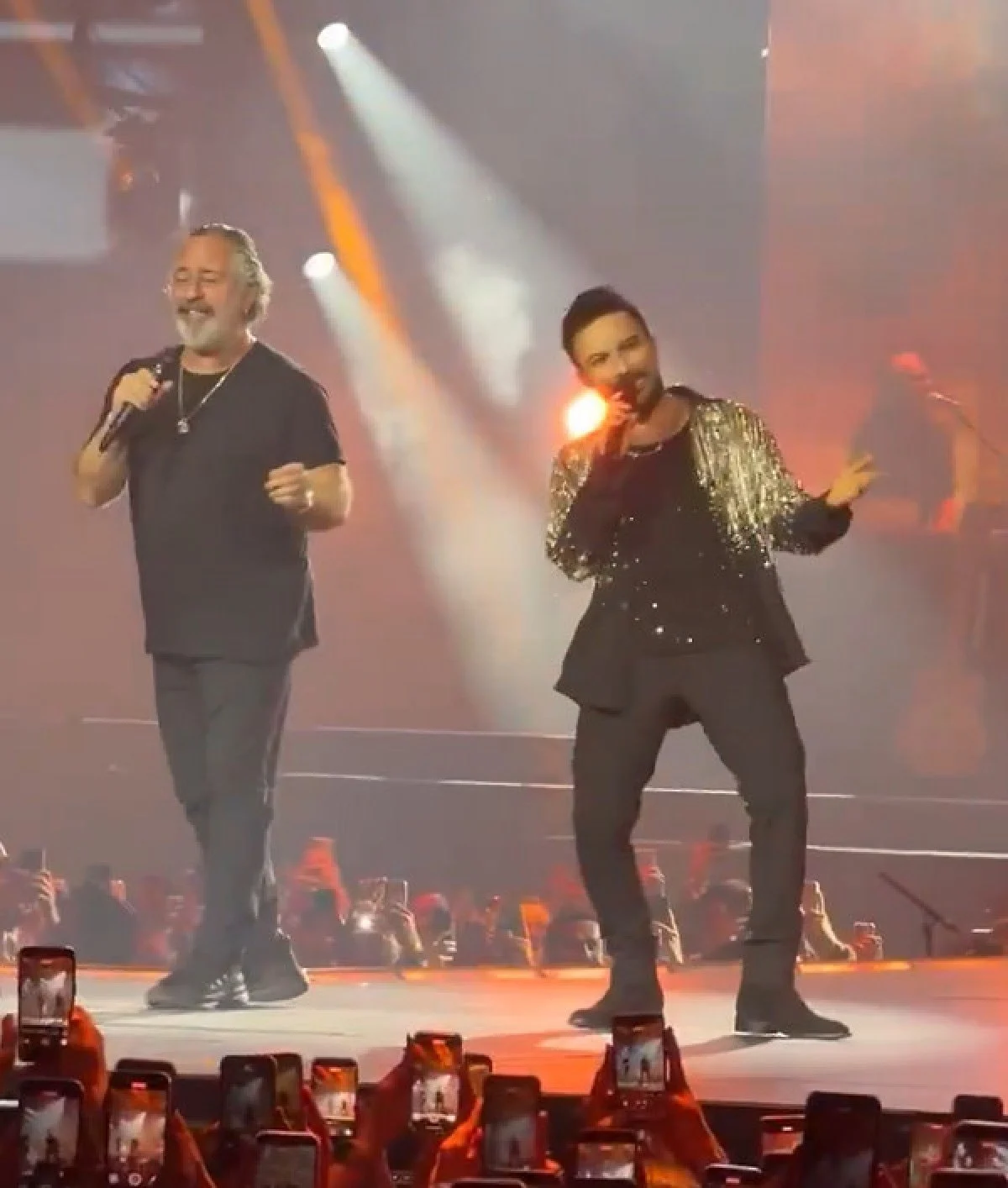 Başında bandana ile sahneye gelen Cem Yılnaz, hem birlikte şarkı söyledi hem de Tarkan gibi dans etti. ‘Kuzu kuzu ‘ düeti ve Cem Yılmaz’ın esprileri büyük alkış aldı.