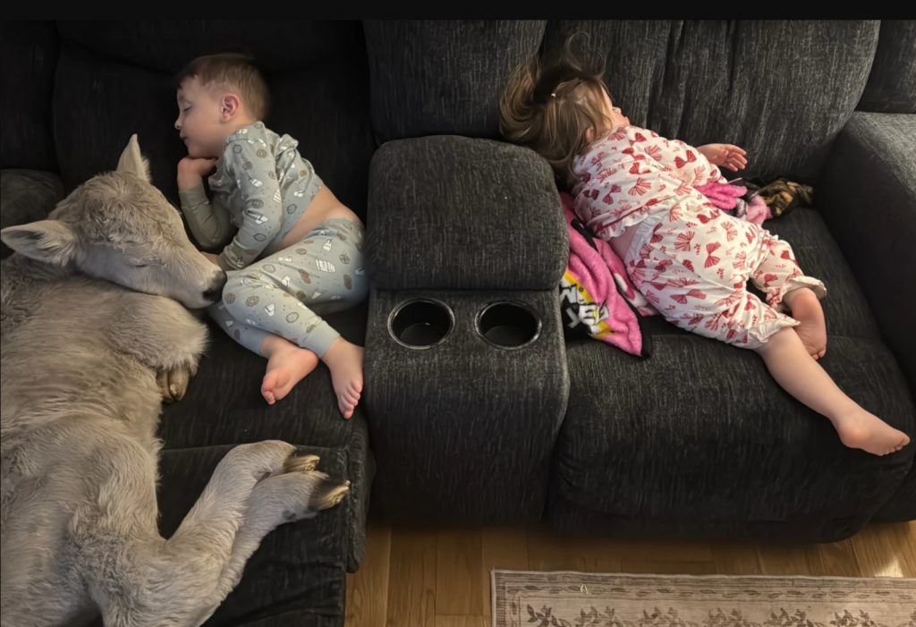 Yeni doğmuş buzağı evin çocuklarıyla çabuk kaynaştı. Çocuklar 3 yaşındaki Gregory ve kız kardeşi Charlee, 36 inek ve sığırdan oluşan sürünün yeni üyesine Sally adını verdiler.