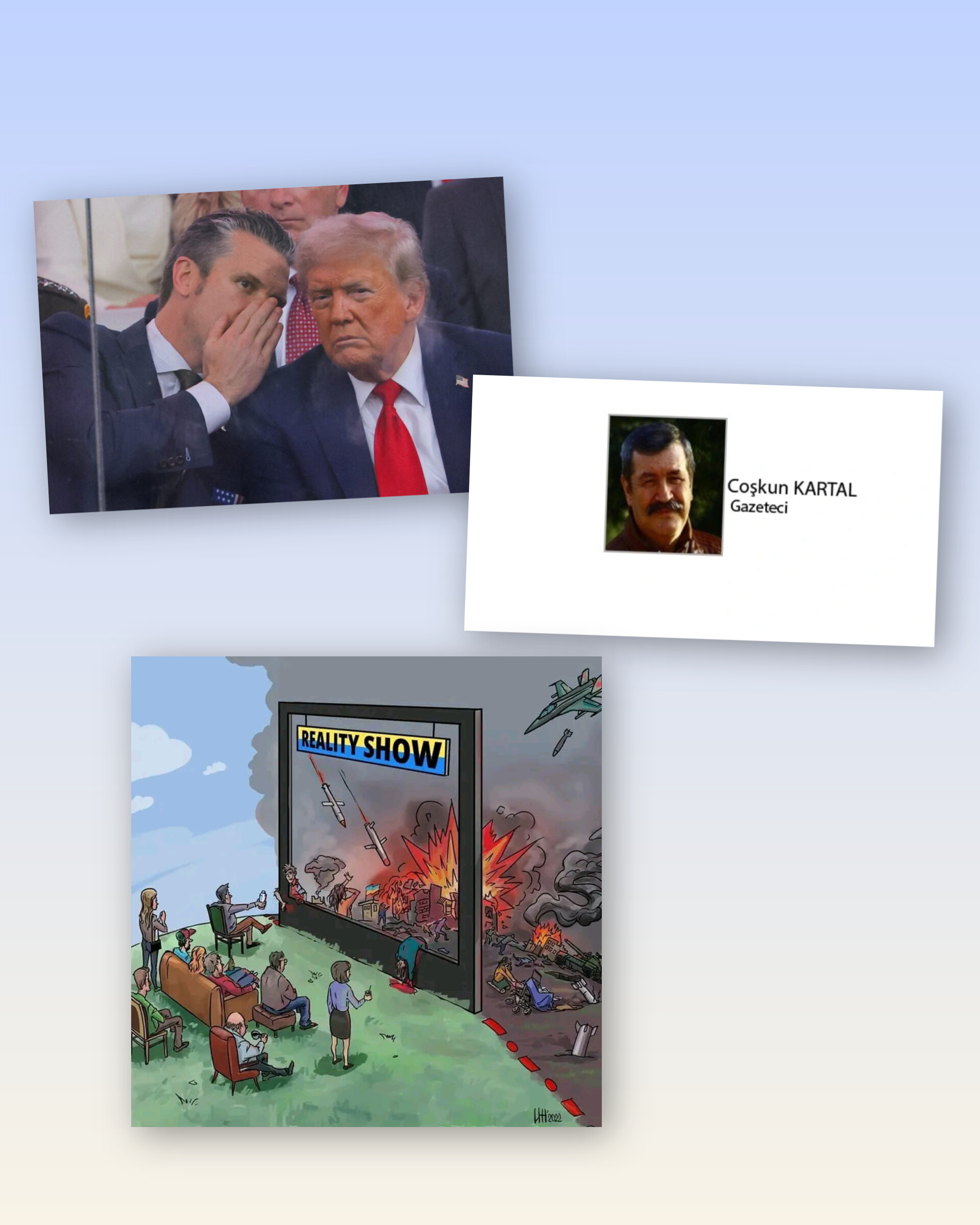 Örneğin “Tel Aviv’de patlama sesleri”, “Tahran’dan yükselen dumanlar”, “Arap emirliklerinde ya da bölgeye yakın ülkelerde hasar yaratan İran saldırıları” gibi.