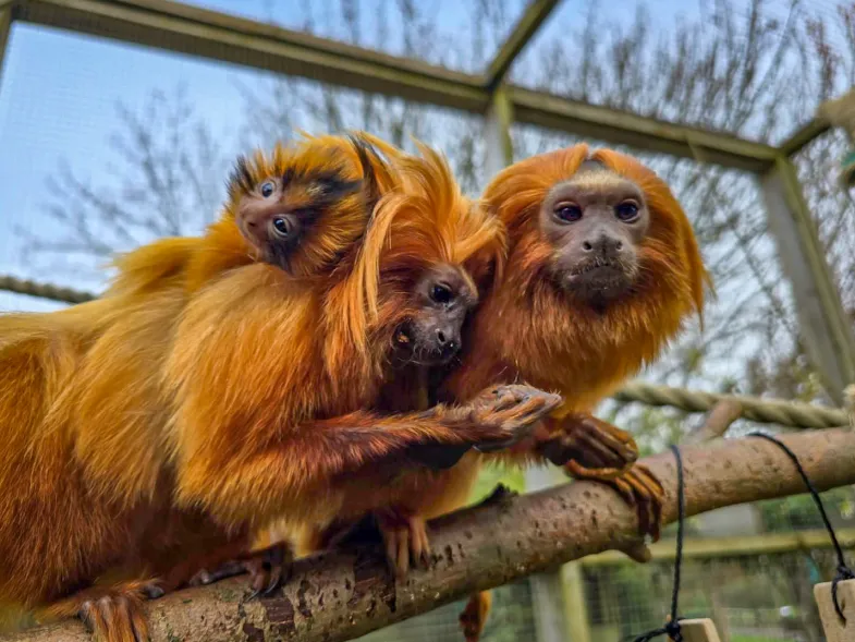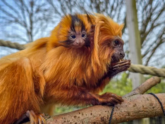 Altın aslan maymunu yavrusu, Newquay Hayvanat Bahçesi’nde gözlerini açtı.