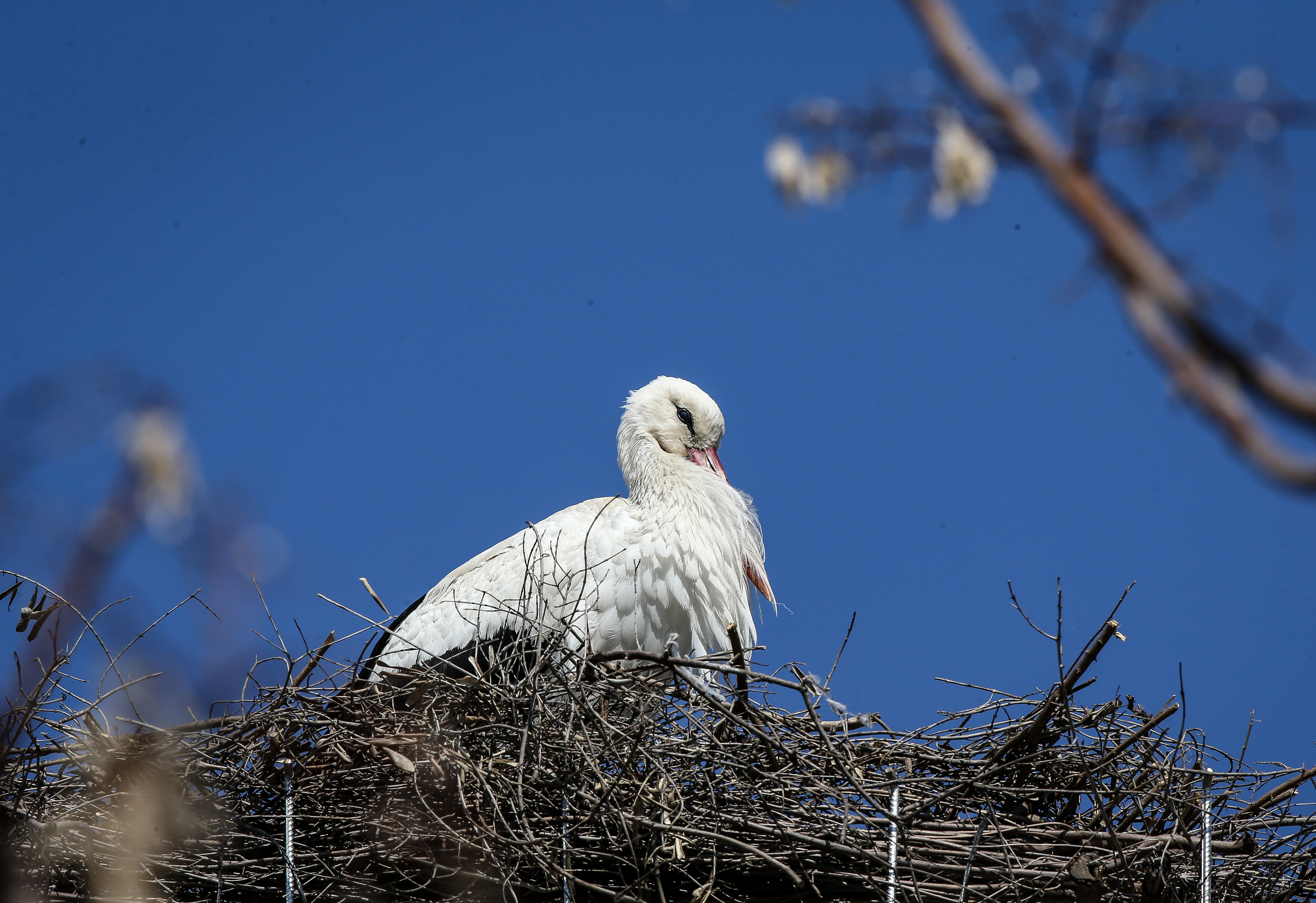 Leylek “Yaren” 10’uncu göç yılında da Uluabat Gölü manzaralı yuvasına yerleşti